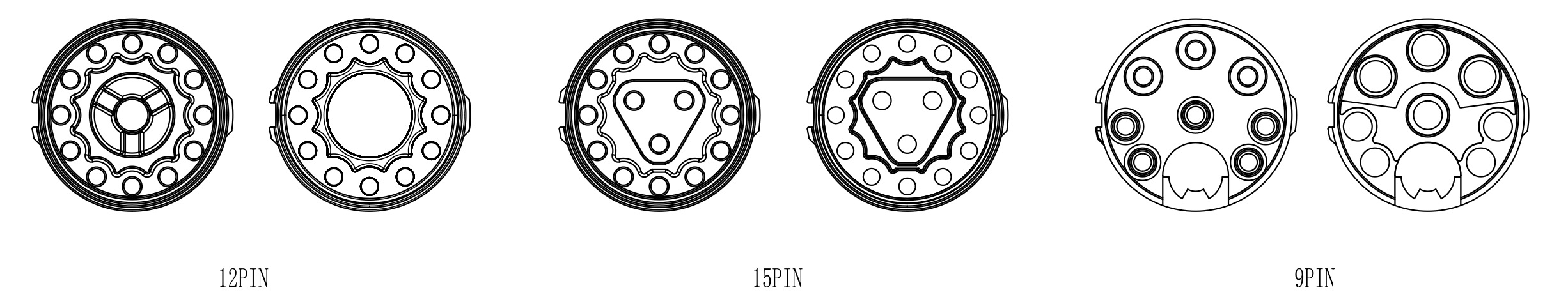 提供9、12、15芯等選項,適配不同信號與電源配置。